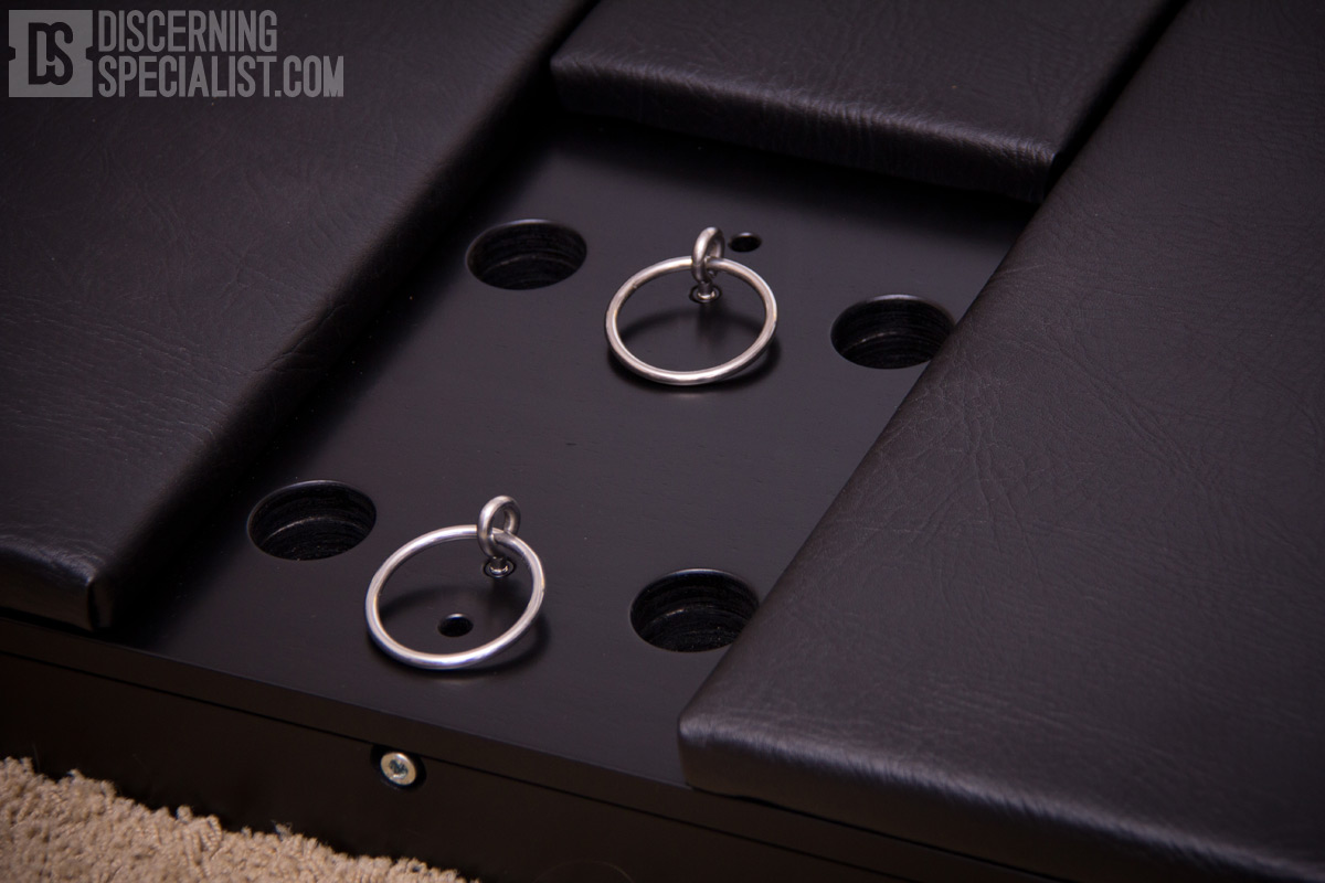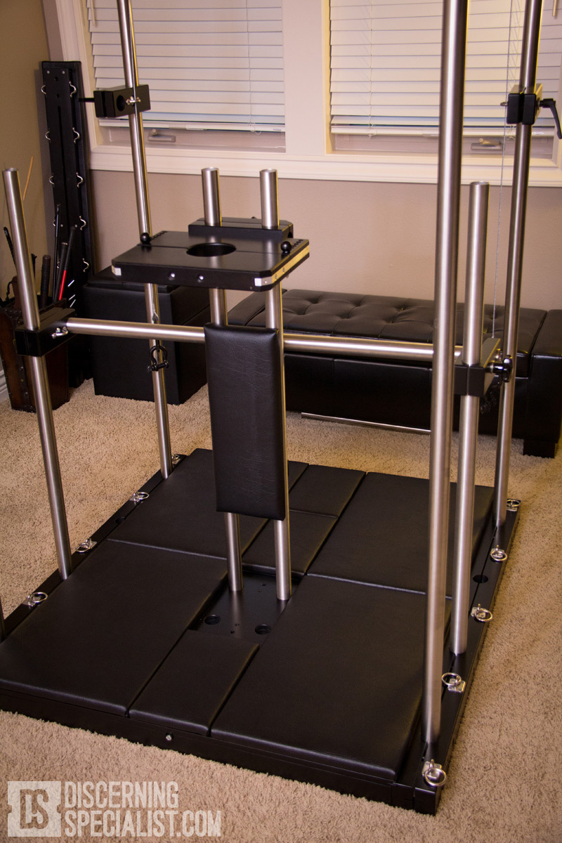 I chose the Cube as it appeared to be a good size for what I was looking for and would be able to utilize the most parts from the SM system. The main Cube platform interestingly is very similar to my custom floor panel design I did with Saxon, however hence the Cube name takes the idea immensely further into the 3rd dimension. It offers the floor restraint and padding options I was looking for while having a whole upper frame to offer a greatly expanded set of connection point options. Since I was already very happy with my Dungeon Bed, the hope was the SM-Cube would cover all the rest of the bondage options I was interested in, yet just taking up a corner of the room rather than needing 4+ more pieces of specific bondage furniture.