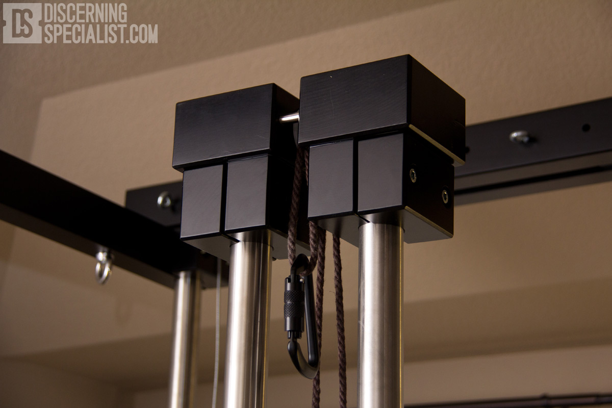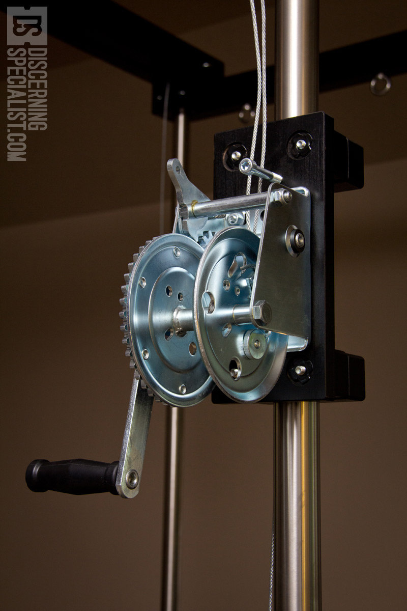 Luckily I inquired about a package option to see many additional parts not shown on the site. Customer service was great putting up with all my questions (I had plenty since a big investment) and showing what all was available. Seeing a nice example, I got a cube package version with Winches and Top Bar Large upgrade. The default cube comes with more simplistic bars up top while the upgrade winch compatible version has 4 pulleys integrated. This allows the Winch cables to be routed in a dual wire configuration or one can even take off one of the wires to run just one down the center pulley. For setup notes it was nice the cables come pre installed in the dual wire configuration and after noticing the Winches should be on a specific side of the Top Bars, installation was overall easy. I haven't used winches much offhand, but they were intuitive to figure out how the direction / stop level worked. While having to fuss with the wires to get them to wrap around the Winch correctly I soon found out it is good to have some sort of weight on the cable ends. Without any weight giving tension on the cable ends the wires will get all messed up in the winch and in general want to go flying off the pulleys. Fortunately an easy fix is to just always keep some heavy carabiners on the ends, yet worth noting the end loops aren't super big so I like to add some larger screw on quick links to make holding larger hardware possible. So far I've been using Quick Links (Screw Type) from Home Depot in the 5/16" wire size, a little under 3" in total length.