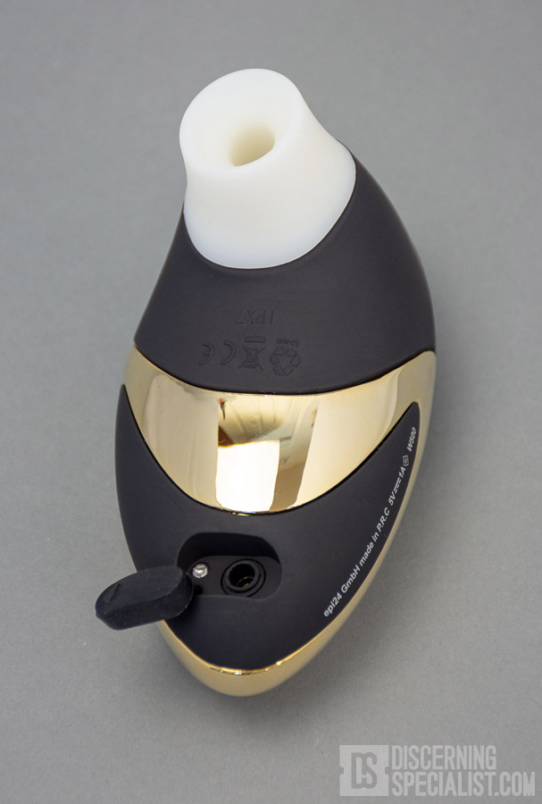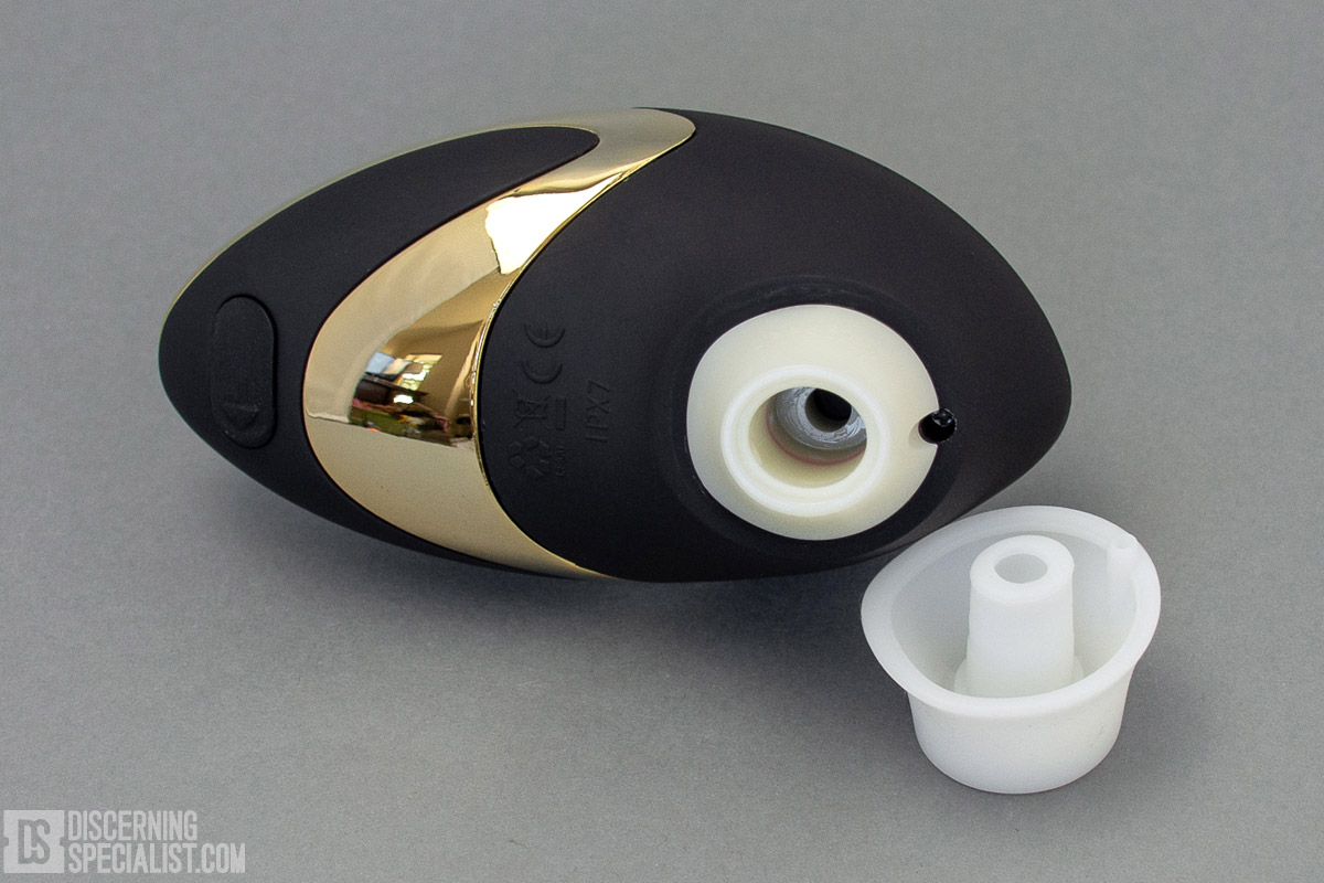 Using the WP is super simple, and I really appreciate that. Just hold the power button and it turns on at the lowest setting. Then adjust the speed with the gold bar. I also appreciate that it has both “+” and “-” buttons. That makes it really easy to find the perfect intensity without having to cycle through a bunch of settings, and that's especially important in a toy that requires you to maintain physical contact to keep the suction going. The overall, button placement is reasonable. The buttons are on the top of the unit so it ends up facing away from you during use. This is ok because the gold bar is easy to feel and the off/on button is a very distinct bar.